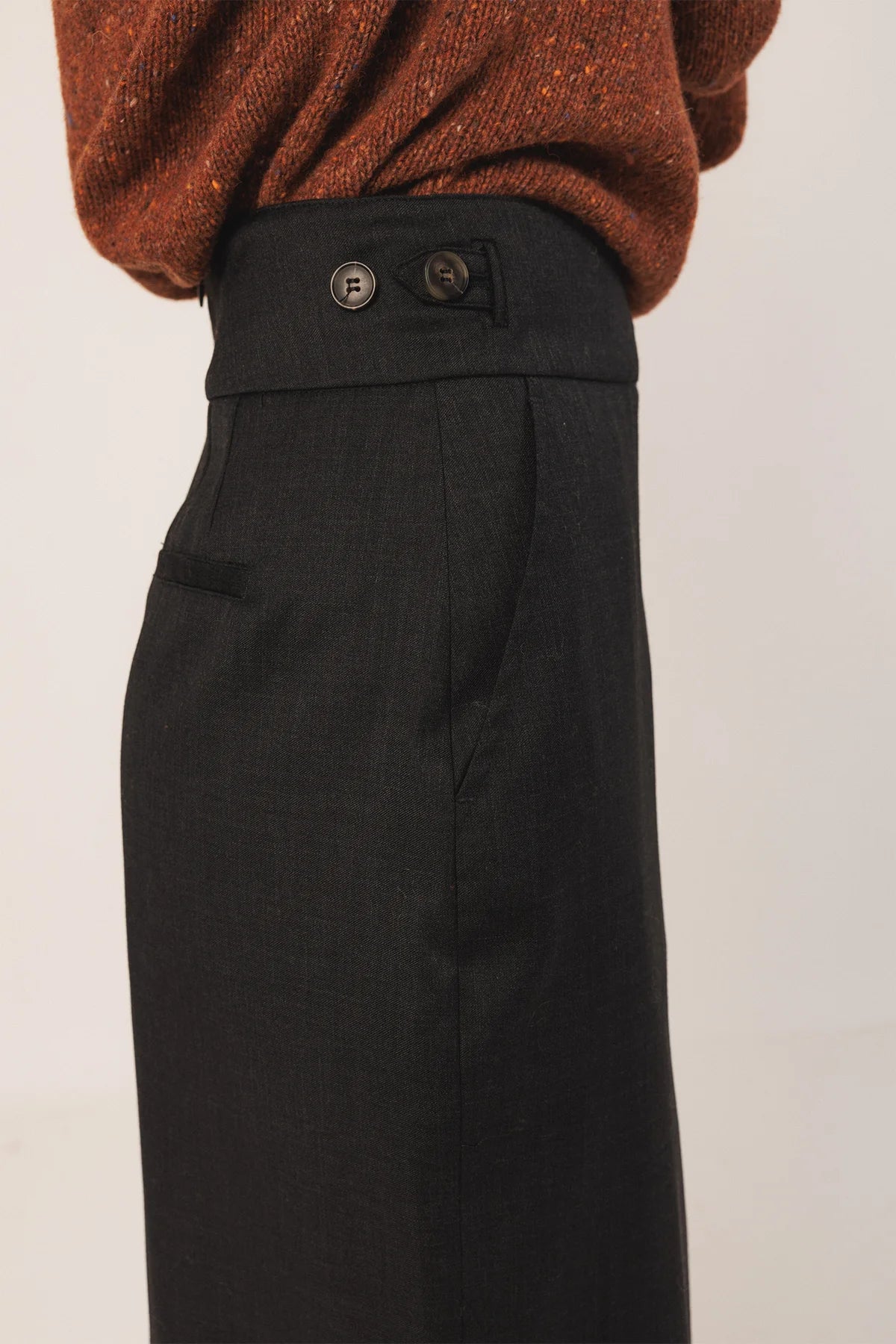 - Hoge taille met knoopsluiting en gekruiste tailleband