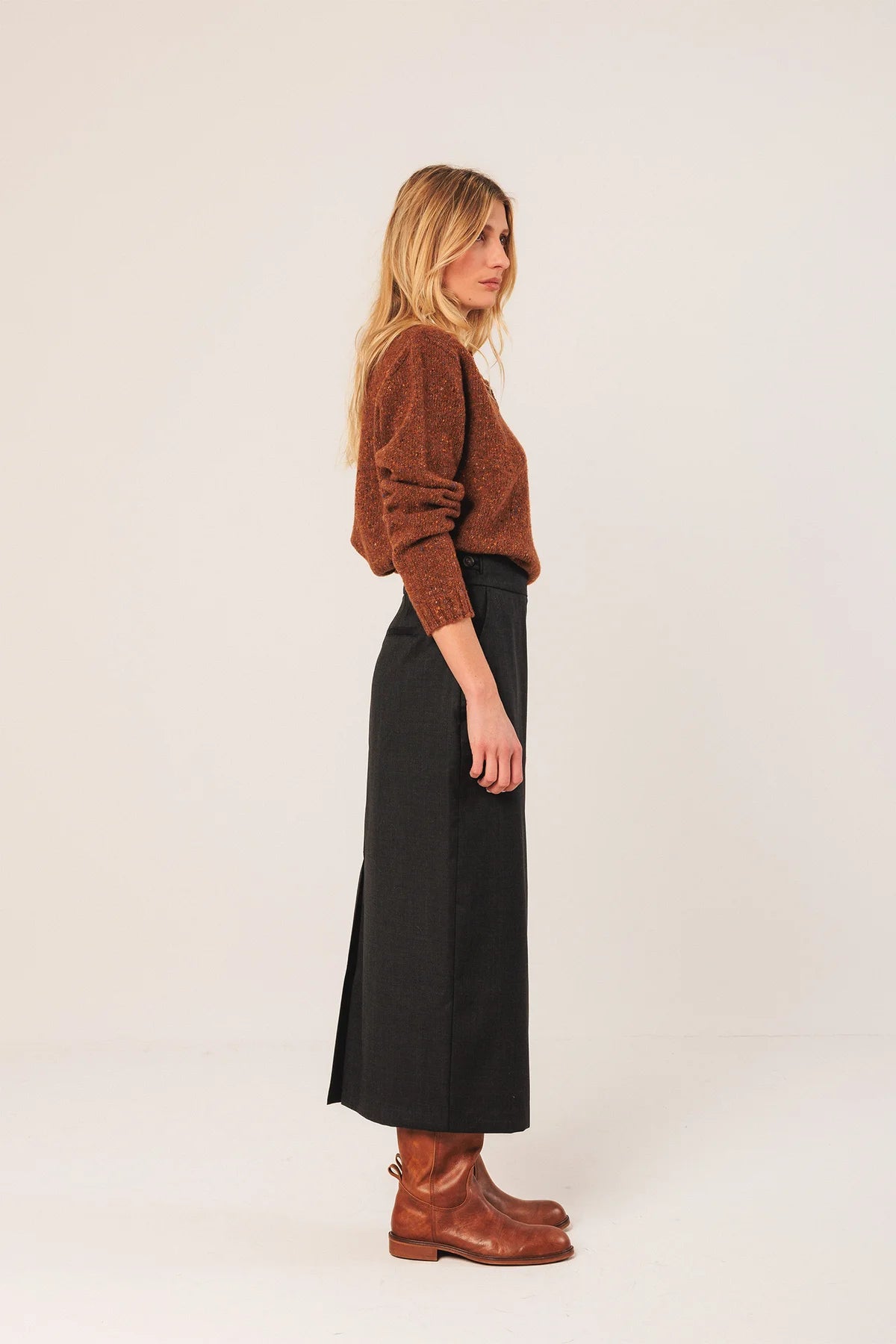 - Franse steekzakken aan de voorkant en split aan de achterkant van de rok