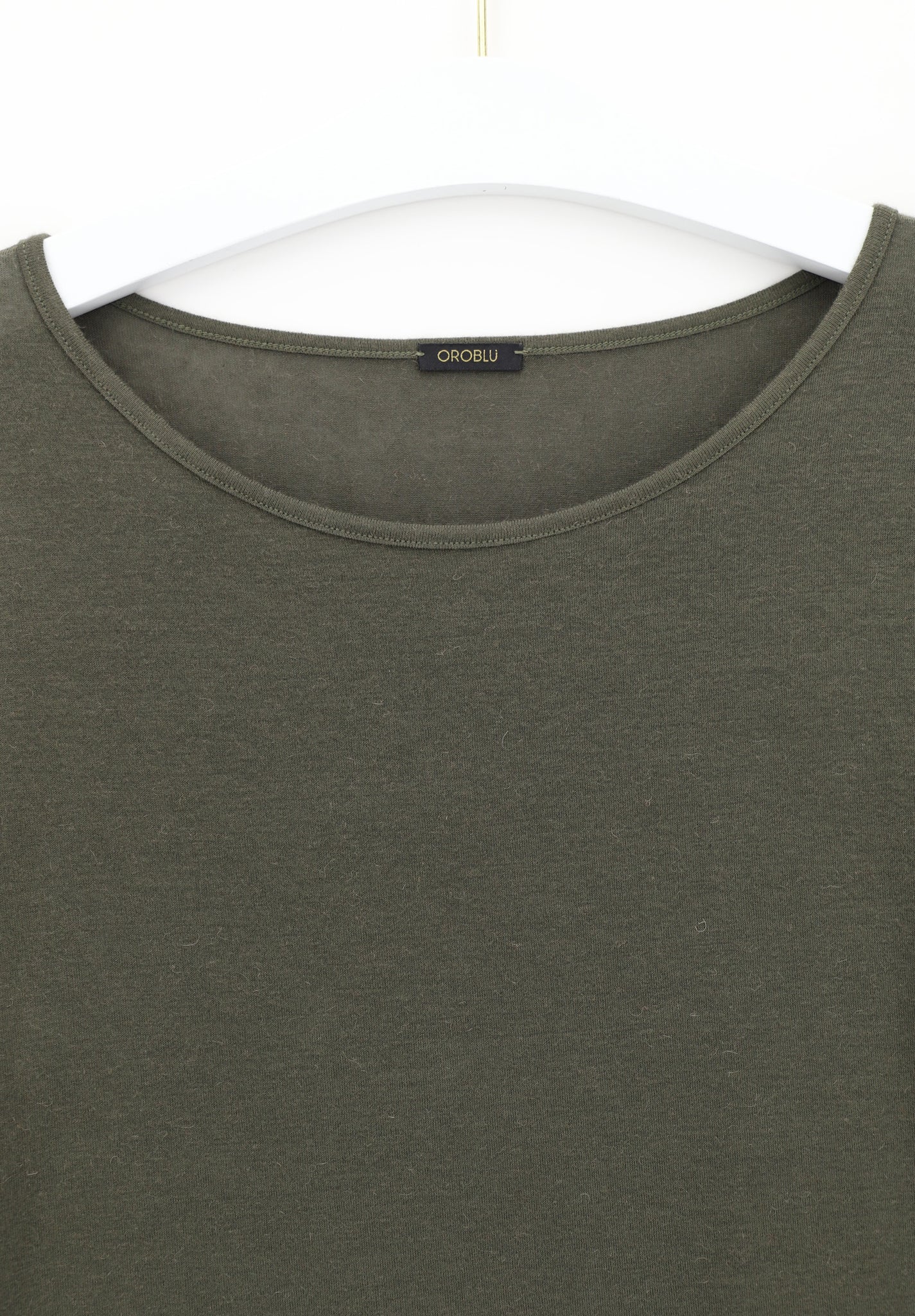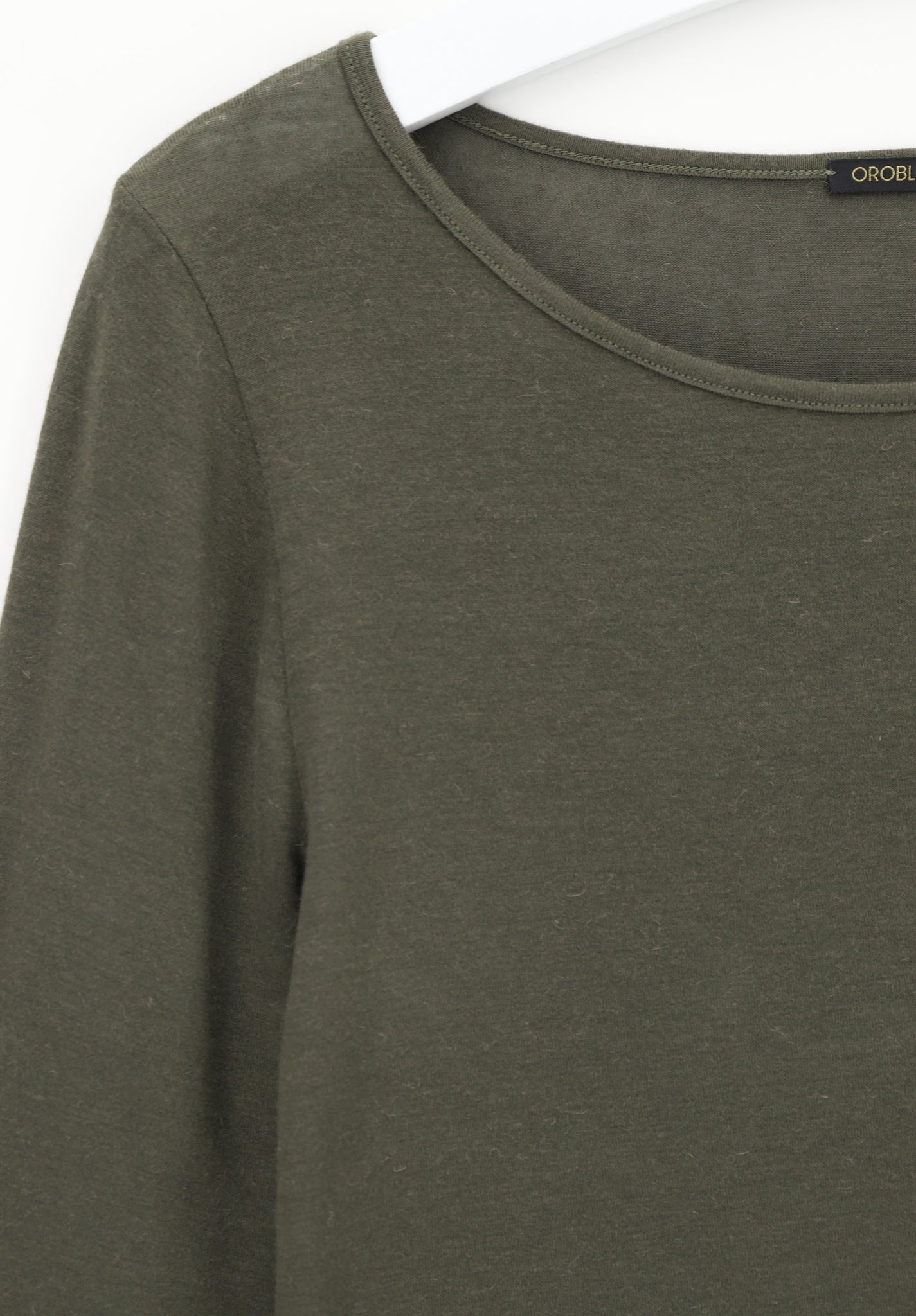 T-shirt met lange mouwen gemaakt van zachte cashmere en zijdeachtig modal. Cashmere wol is duurzaam, gaat jarenlang mee en is zelfreinigend.