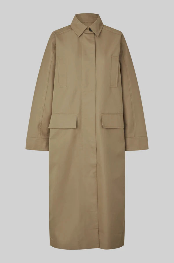 De jas is gemaakt van een gladde katoenmix. Voorzien van een verborgen ritssluiting en drukknoopsluiting met knoop bij de hals. Twee borstzakken aan de zijkant en twee klepzakken. Knoopsluiting aan de manchetten en op de rug. Losse, rechte pasvorm.