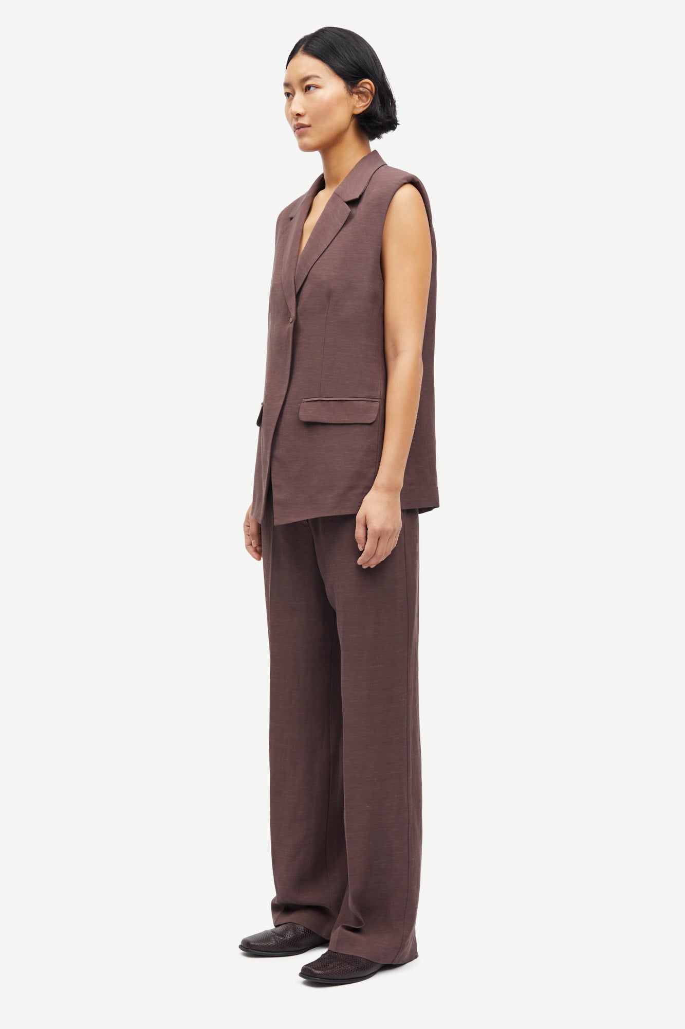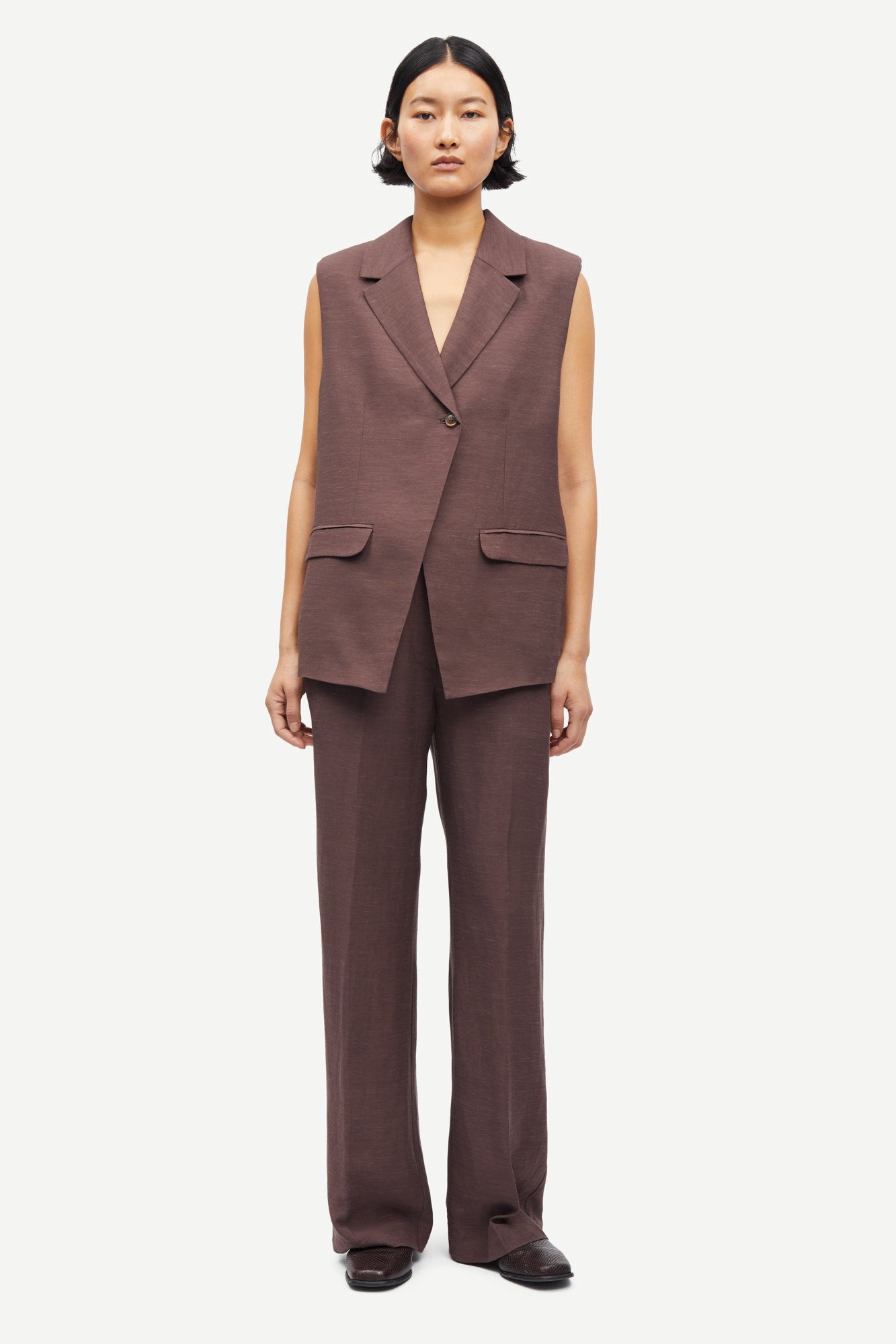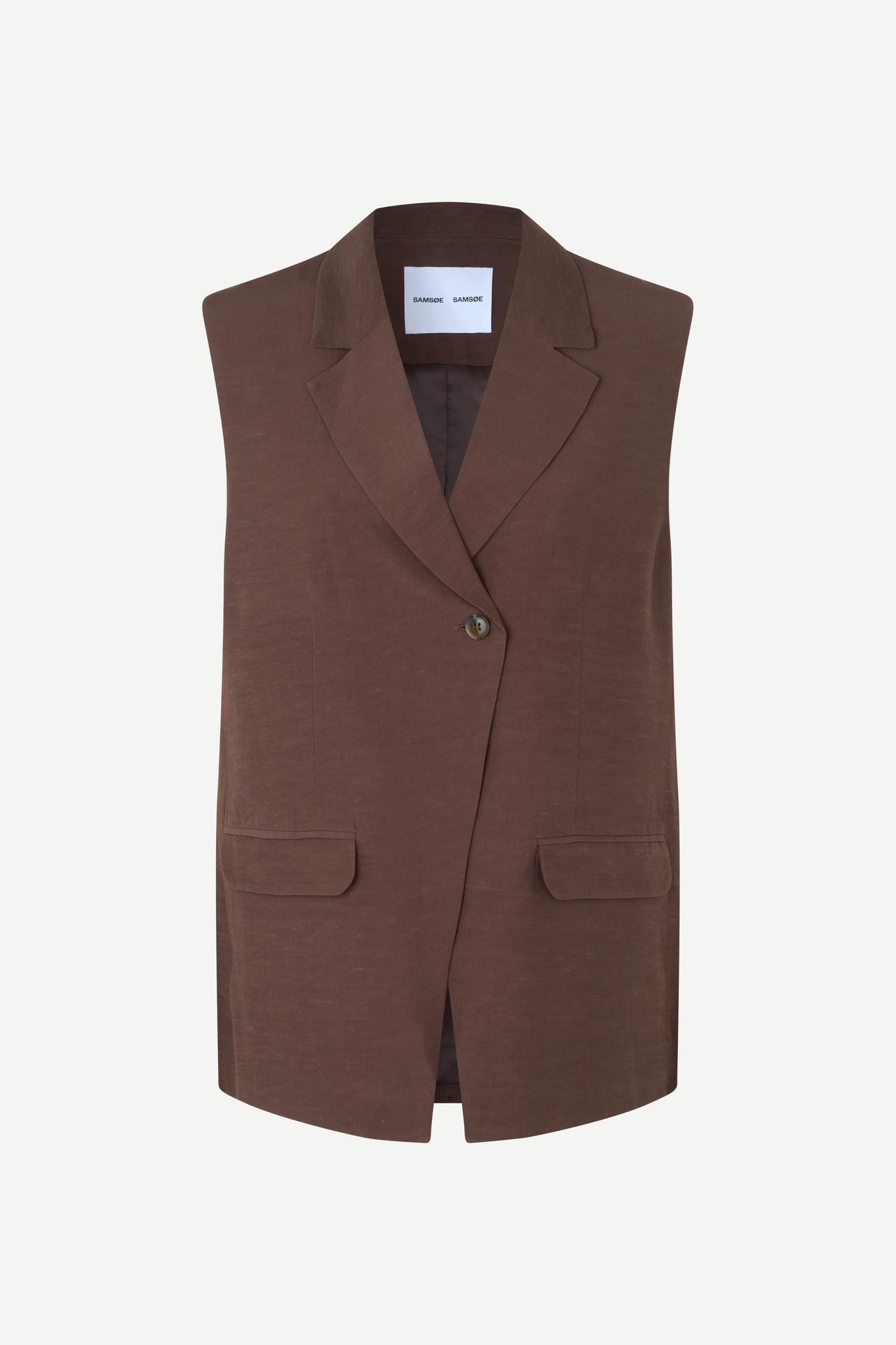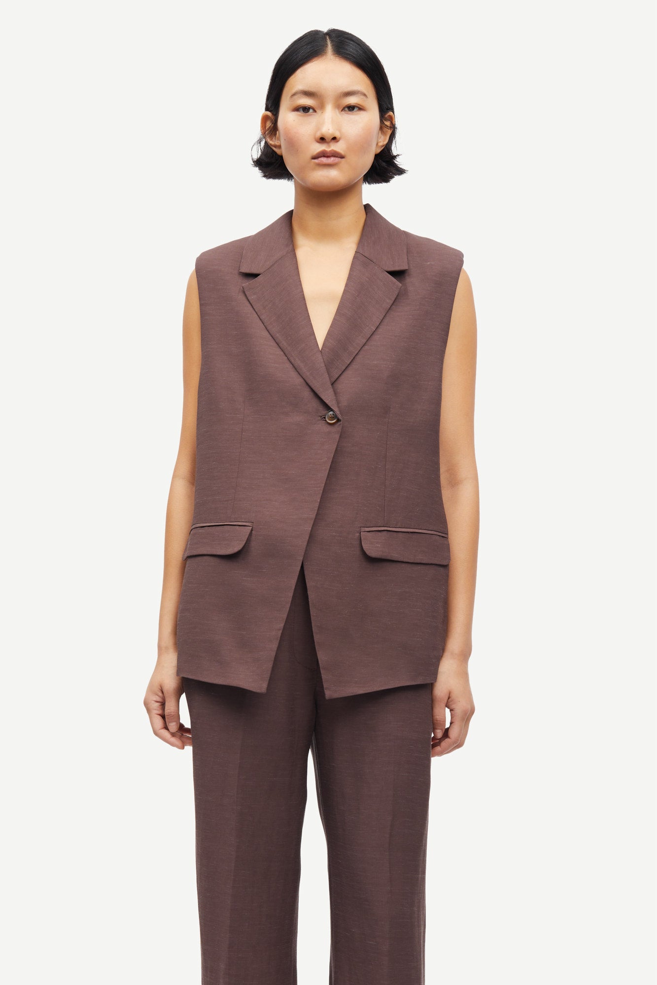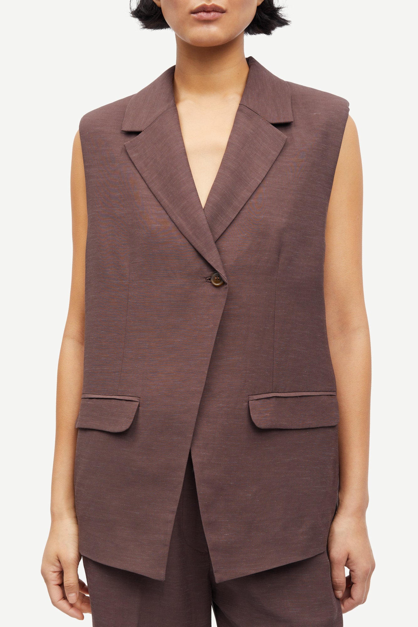 Vest met een losse pasvorm. Enkelrijssluiting aan de voorkant en verborgen knoop aan de binnenkant. Ingekeepte revers. Paspelzakken met kleppen aan de voorkant. Split aan de achterkant. Schoudervullingen. Het hoofdmateriaal is gemaakt van een mix van onder andere LENZING™ ECOVERO™ viscose en linnen. Dit product bevat LENZING™ ECOVERO™ viscose, gecertificeerd met het EU Ecolabel voor textielproducten (licentienummer AT/016/001) voor milieuvriendelijke uitmuntendheid.