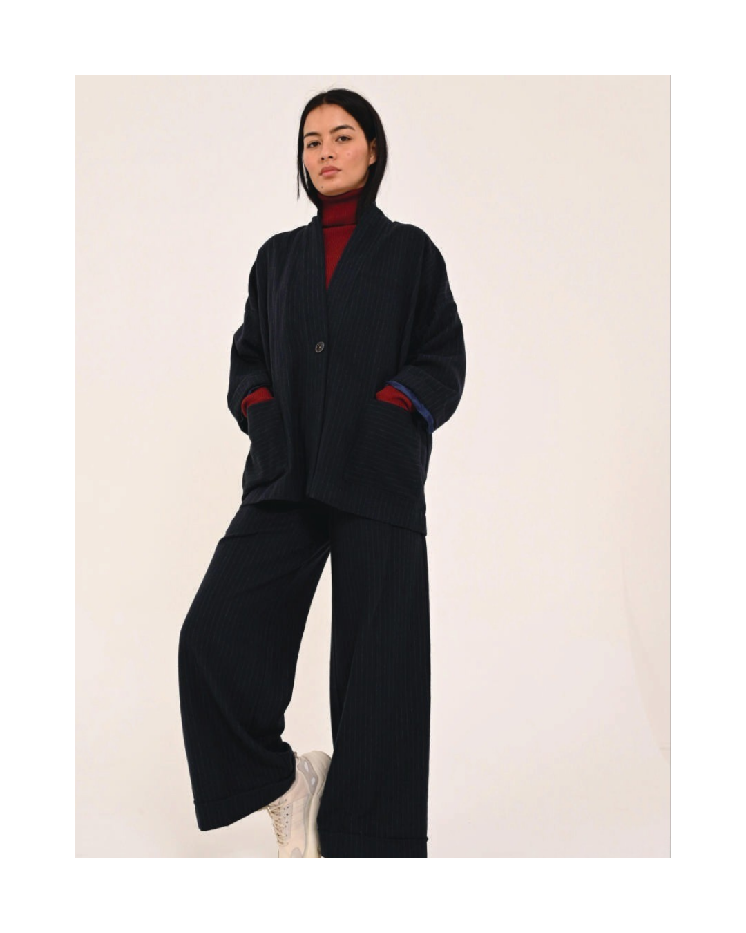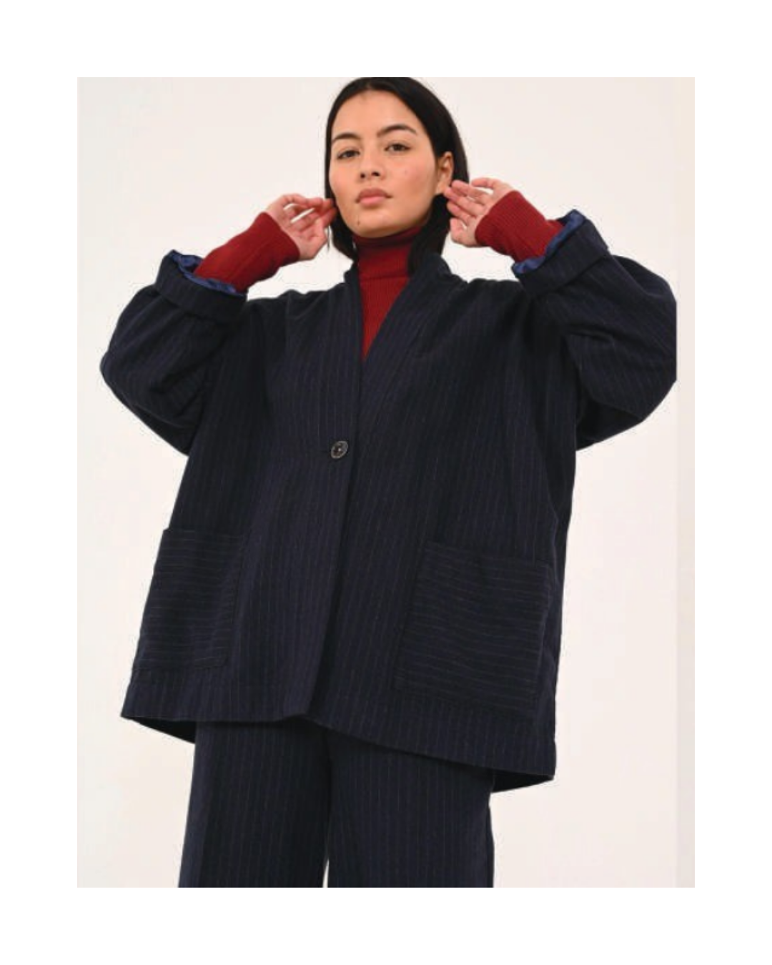 Oversized kimono blazer met pinstripe. Maak de set af met de Dries pantalon.